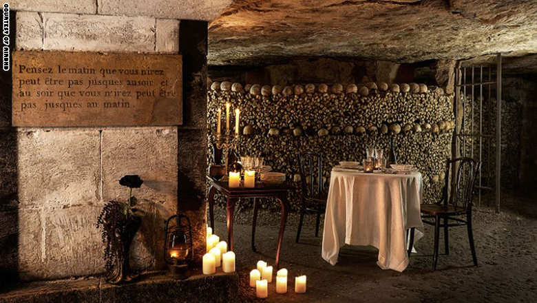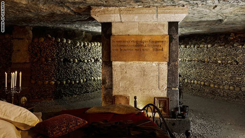 إنها غرفة معزولة عن العالم، حيث الهدوء الكامل، ولا يمكن الاتصال بشبكة انترنت ولا الهاتف المتحرك. لا يوجد أحد ليشاطركما هذه اللحظة.. سوى الهياكل العظمية المكدسة لمئات آلاف الباريسيين.